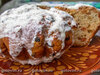Когда тесто поднимется, добавьте 8 желтков, растертых добела с одной половиной сахара, и 8 взбитых с другой половиной сахара в стойкую пену белков; перемешайте сверху вниз, добавив муку, сколько потребуется, и дайте тесту подняться вторично. Затем тесто тщательно выбейте, положите в смазанную маслом и подпыленную мукой форму, заполнив ее до половины. Дайте